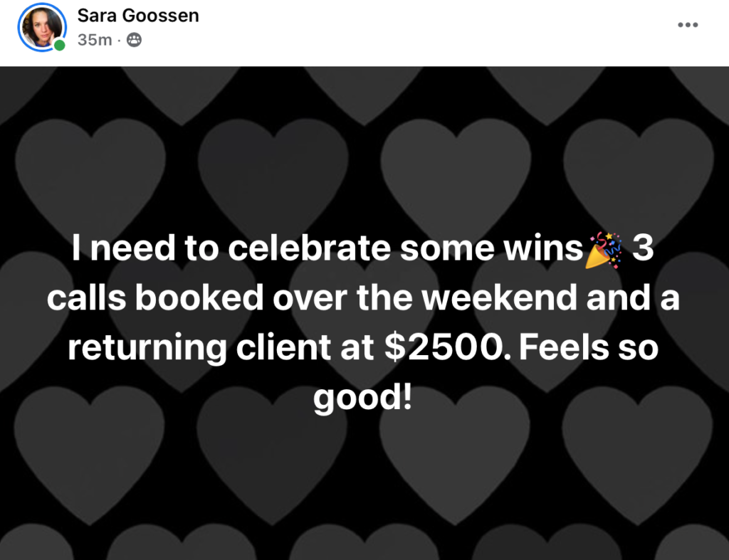 Sara is an incredible mindset and business coach! She is developing a highly sustainable business doing what she loves and helping entrepreneurs to optimize their businesses. She got a system in place that brings in targeted leads and clients on an ongoing basis.