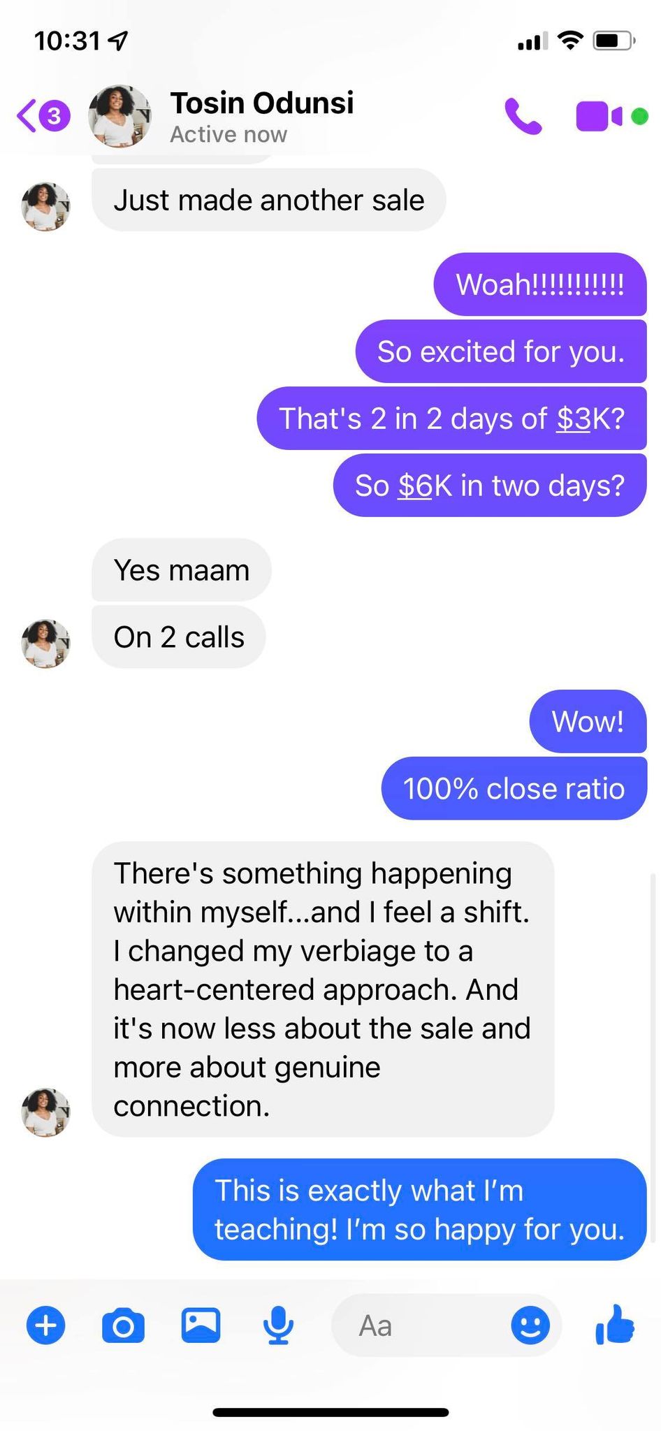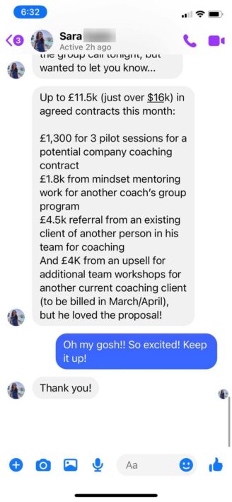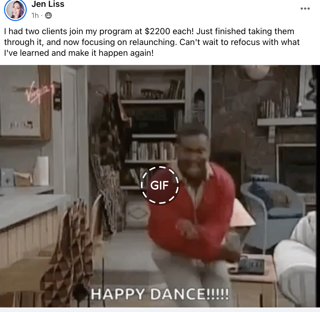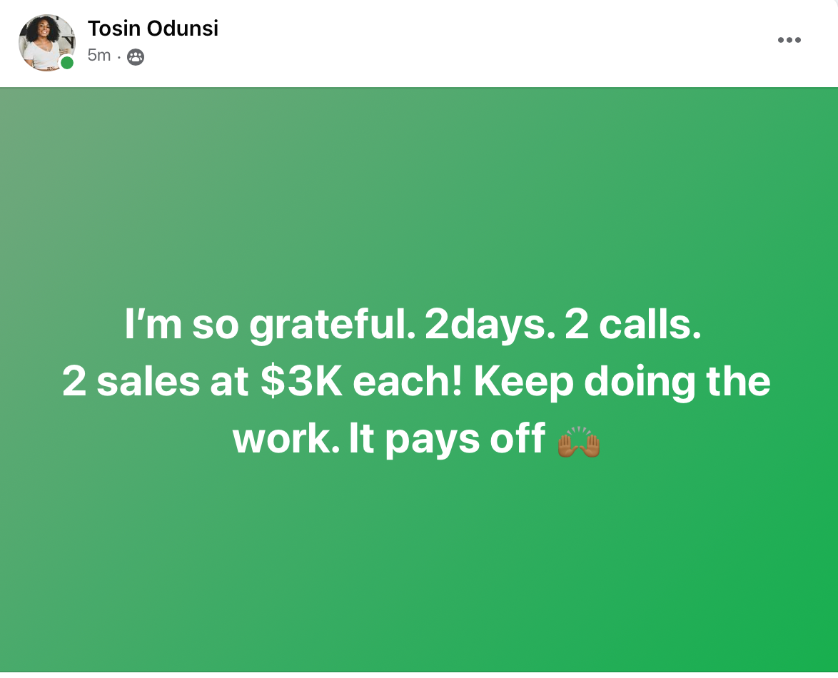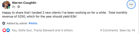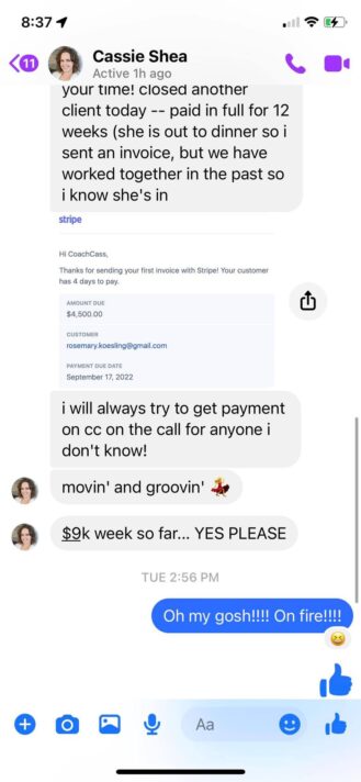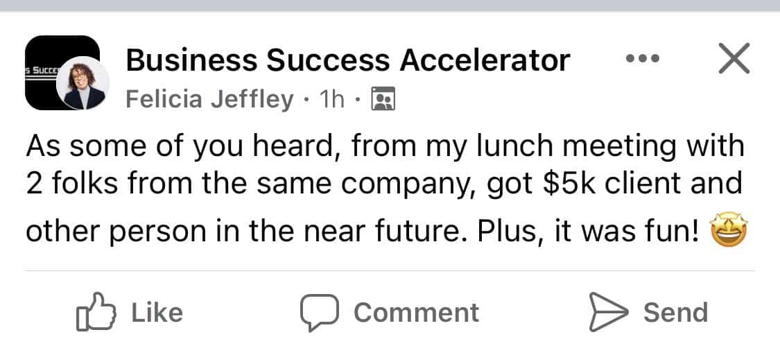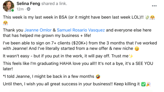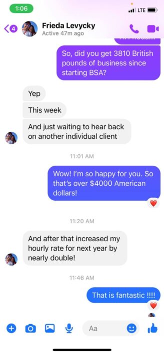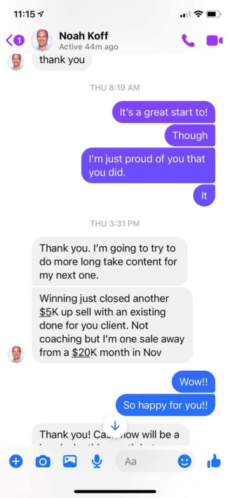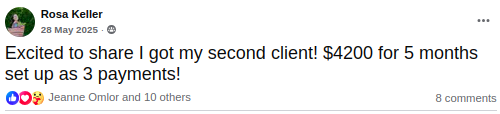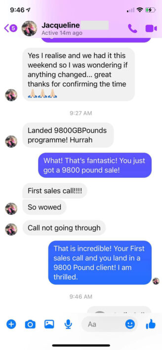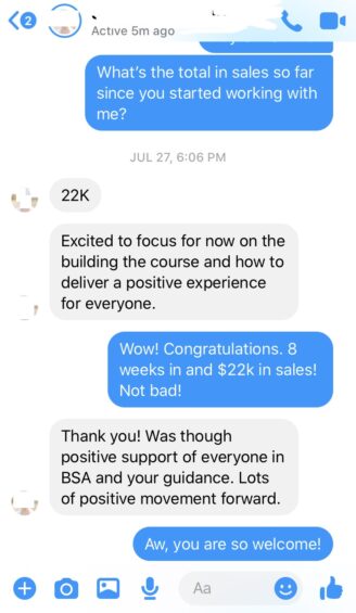 Joey came to Jeanne to learn how to consistently make 5 Figure Months in his Service Based Business and within a couple of weeks of working with Jeanne he brought in a $14,000 of Revenue. A very happy client indeed!
