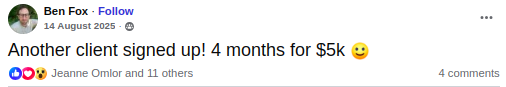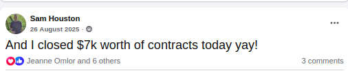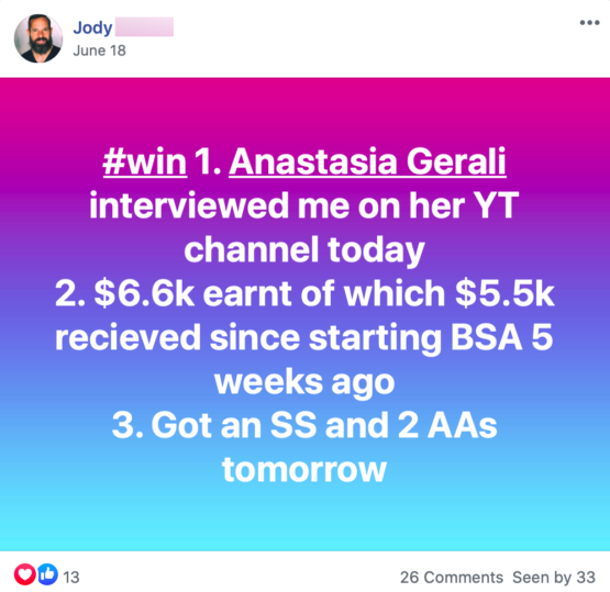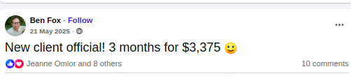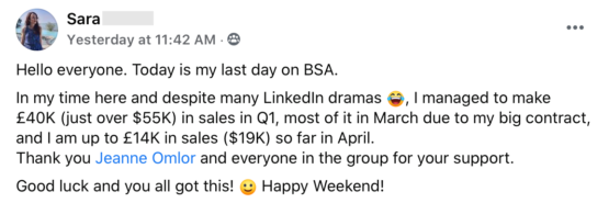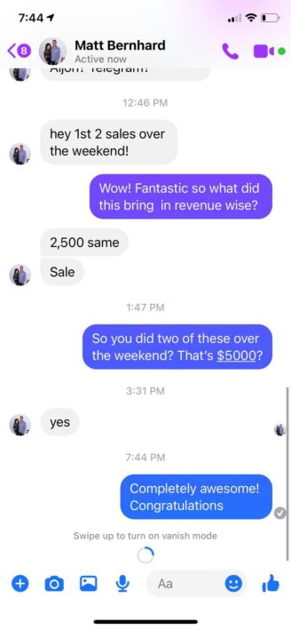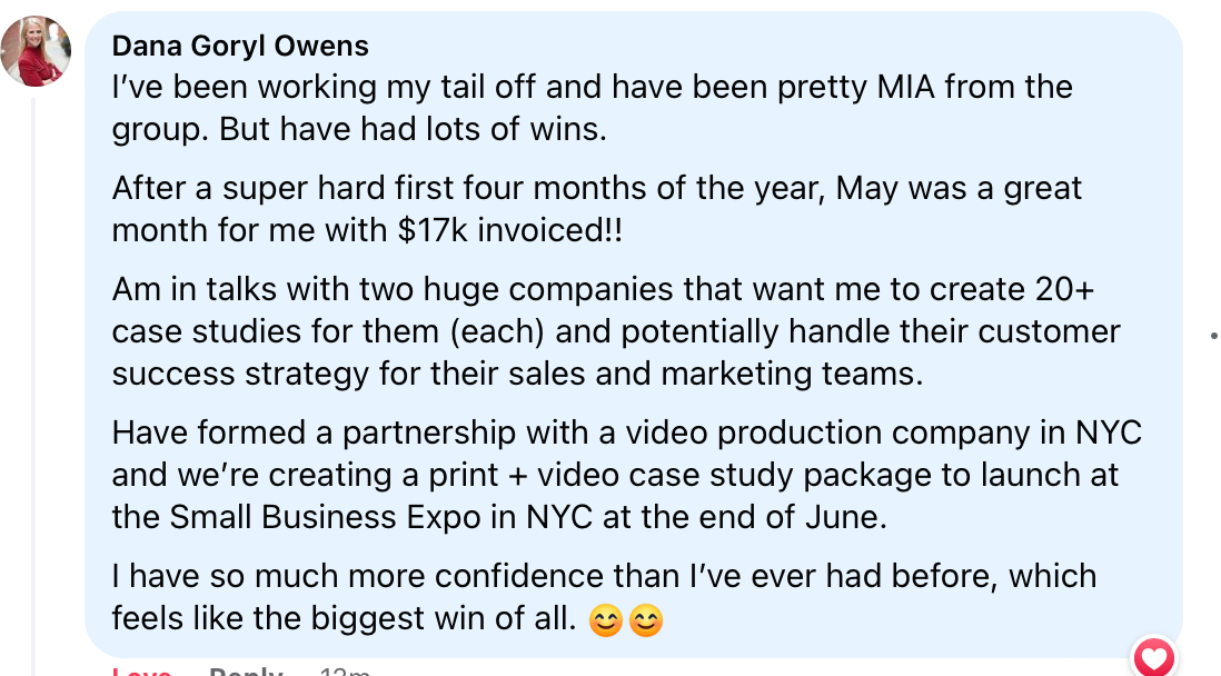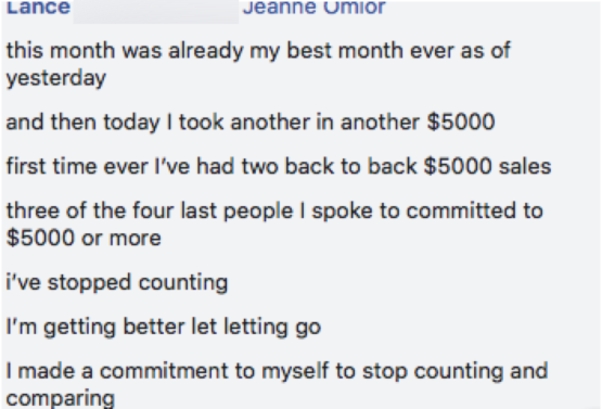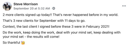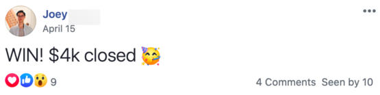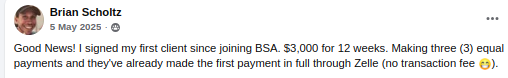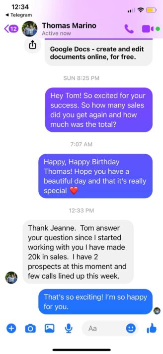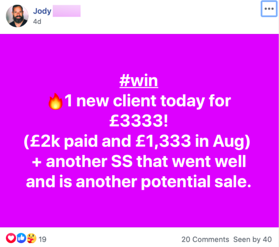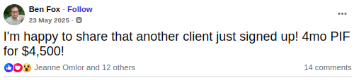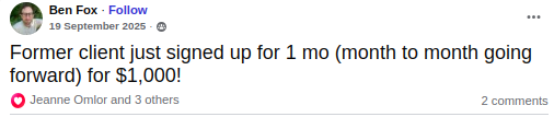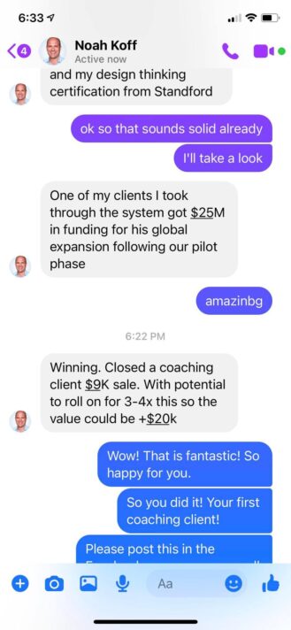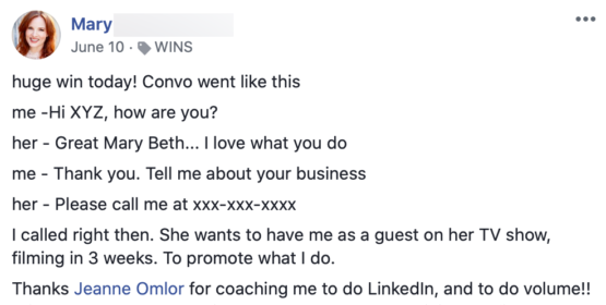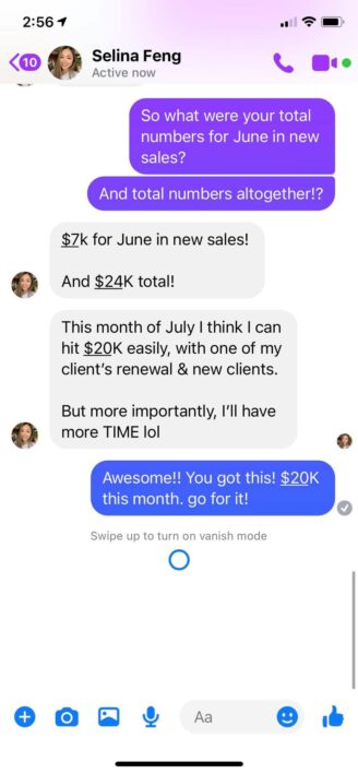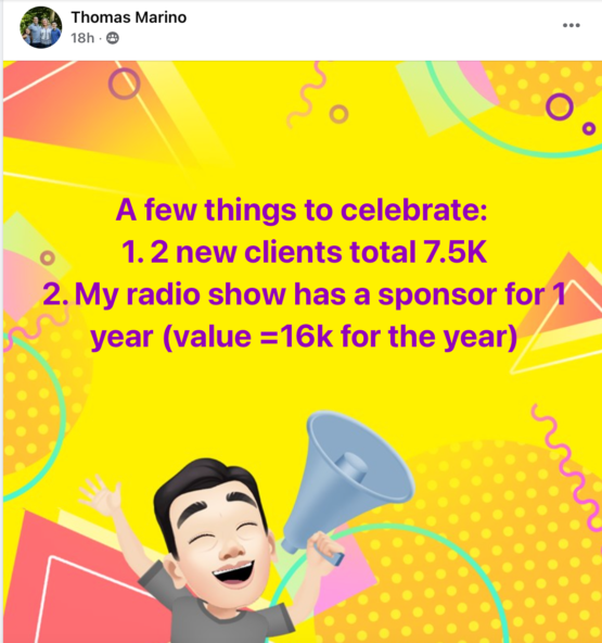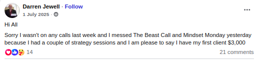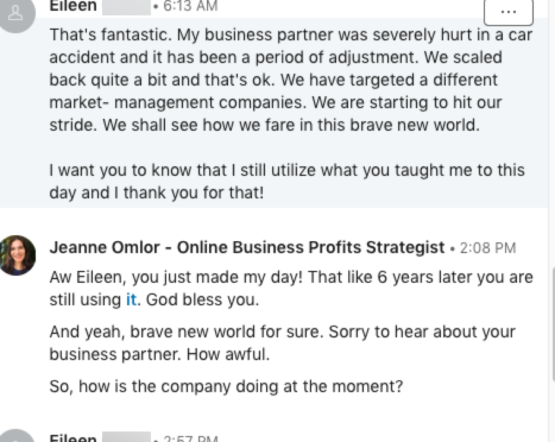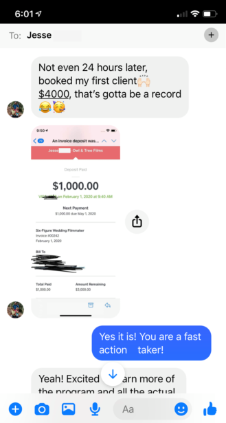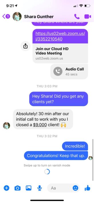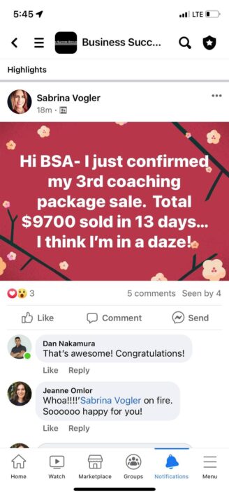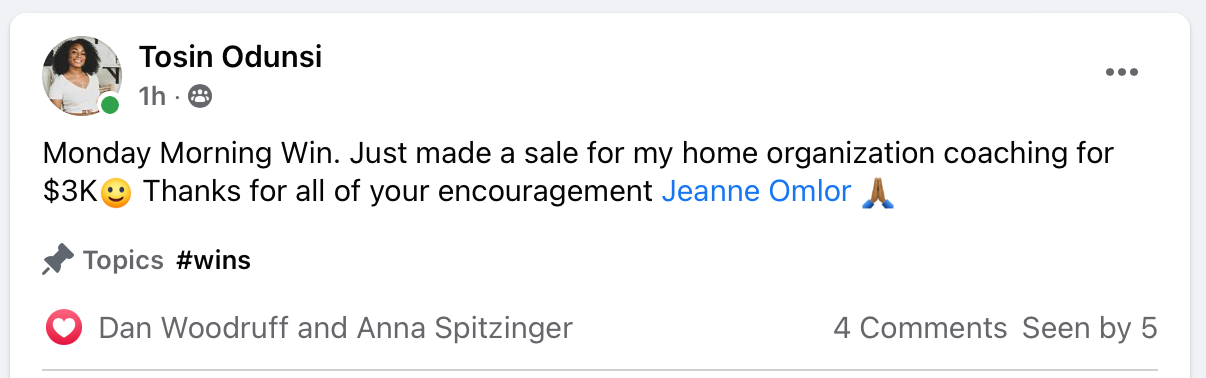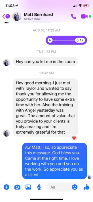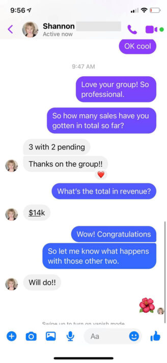 Joey came to Jeanne to learn how to consistently make 5 Figure Months in his Service Based Business and within a couple of weeks of working with Jeanne he brought in a $14,000 of Revenue. A very happy client indeed!