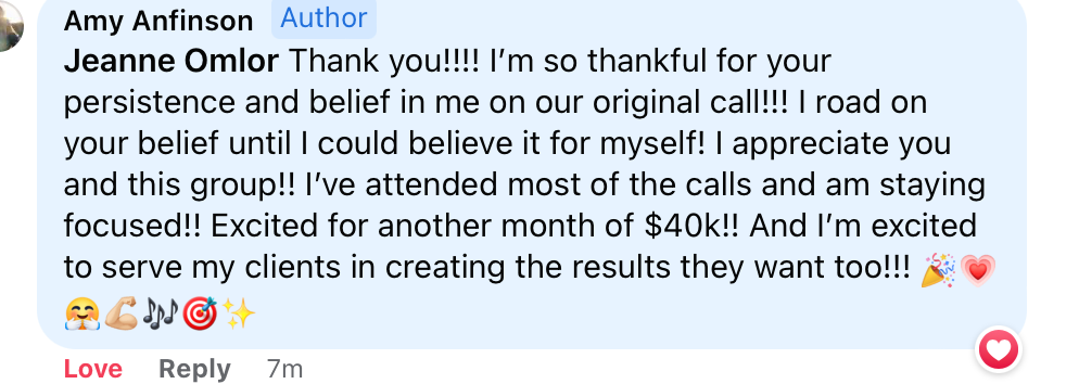 Amy Anfinson had her highest month ever in her business of $43K cash in 4 weeks of working with us