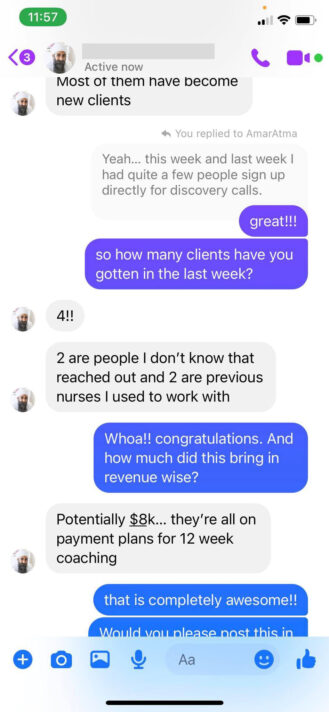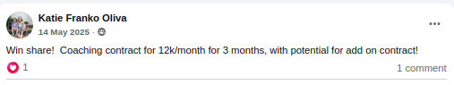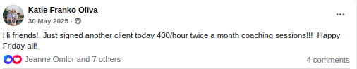Katie has gotten to $396K in 4.5 months of working with us. She is a leadership coach.
