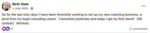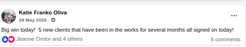 Watch this space as my clients are having so many wins it’s hard to keep track and post to this page!