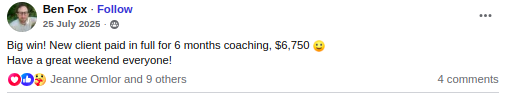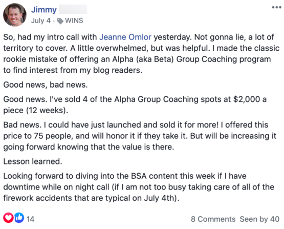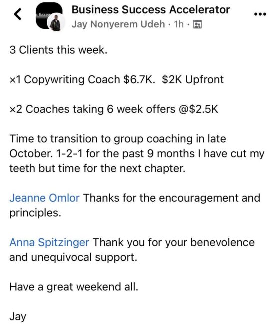 Jay helps coaches get clients using Facebook Groups and Zoom Presentations! He got to $17k in 3 weeks of working with us.