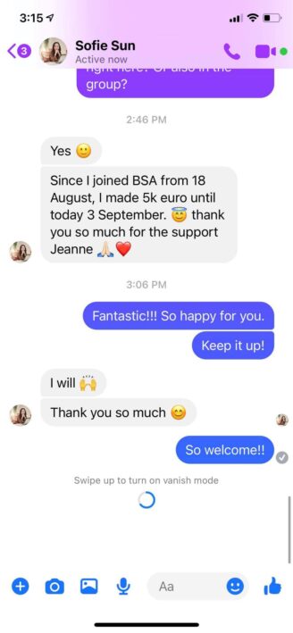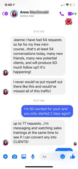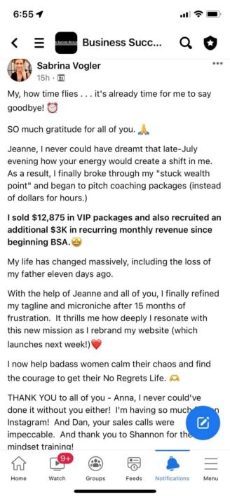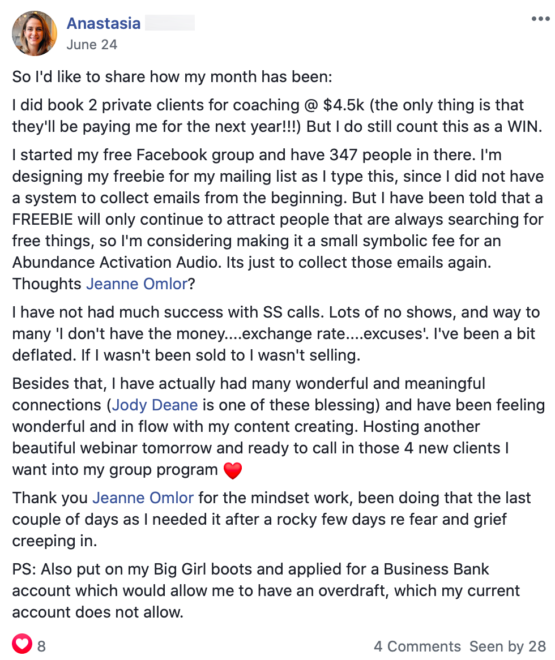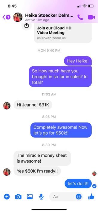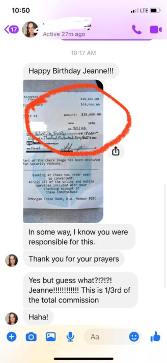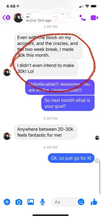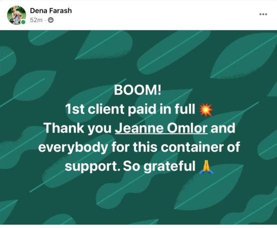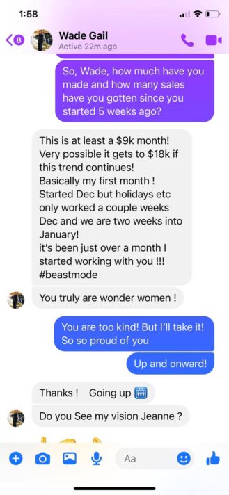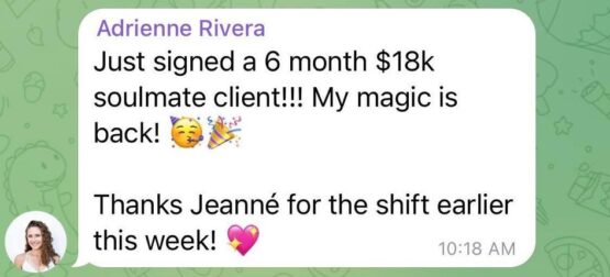 Heather met Jeanne last fall and when she starting working with her she immediately went from $2K per month to $30K. With a bit more of Jeanne’s help, Heather quickly climbed to $50k months and is now sitting at $100k months staying a part of Jeanne’s community and with her extended help.