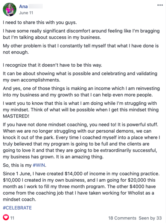 Ramona is an Emotional Intelligence, Mindset and Leadership Coach. She got to $10K in a few weeks in the program.