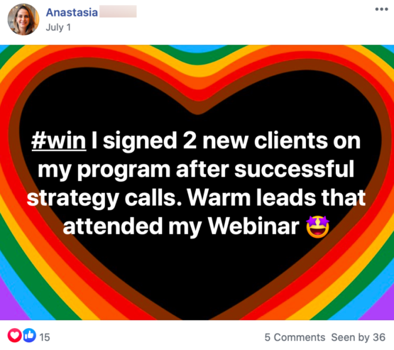 Anastasia doubled her income and clients list, got super clear on new systems to BE ABLE to scale! She had been helping a lot of women to transform their lives but wanted to go BIG! She got out of the confusion of not knowing where to turn, where to be, and what to do.